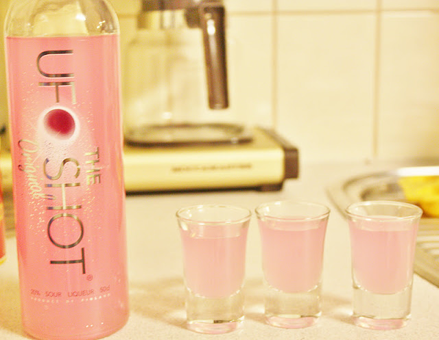 Ufo Shot on sekoitus kirpeitä punaisia marjoja ja salmiakkia. Aivan kuten vanhat kunnon legendaariset ufokarkit, saa tämäkin naaman irvistelemään ja silmät vuotamaan. No ei ihan, mutta melkein. Tiedättekö kun on niitä oikeita aitoja TOSI kirpeitä ufokarkkeja ja sitten on niitä ei niin kirpeitä ja vähän jopa laimeita kopioita. No tää maku muistuttaa, ehkä enemmän niitä laimeita ufokarkkeja. Mutta ite kyllä tykkäsin tosi paljon. Pitää vielä joskus kokeilla tätä erilaisiin drinkkeihin. Ufo karkit kuuluukin mun "must have" irttarisuosikkeihin :)
